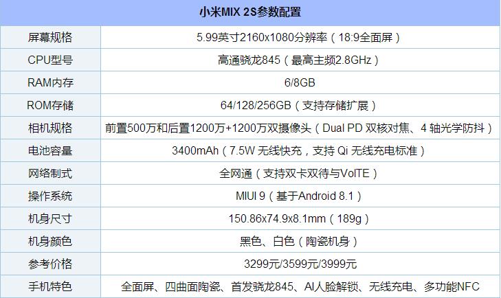小米MIX 2S从命名上就很有趣,手机以“S”为后缀的产品大家都见得不少,一般来说都是上一代产品的改款,而非一个比较明显的换代产品。下面我们就通过表格,来看看此次小米MIX 2S在哪方面有所提升。