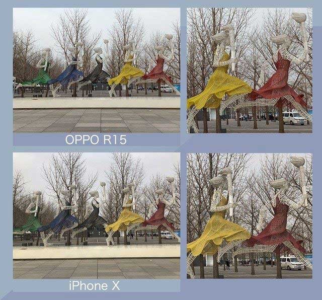 看完室内拍照样张对比,下面我们再来看室外的OPPO R15和iPhone X拍照样张对比,如下图所示。