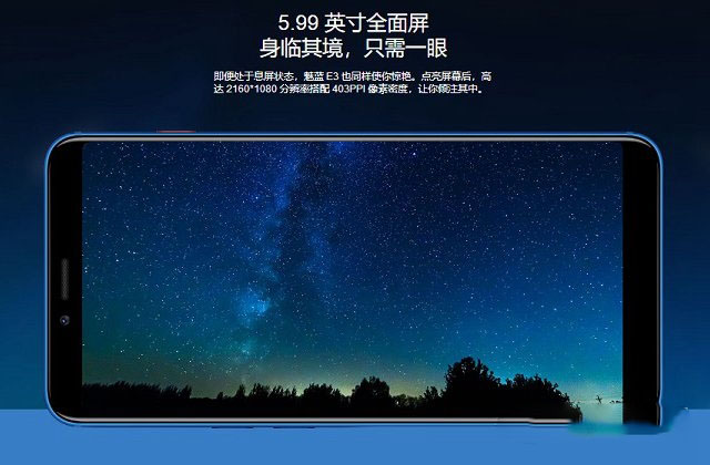 外观方面,魅蓝E3依然延续了魅蓝S6设计风格,采用一体金属机身设计,正面均为时下流行的18:9全面屏设计,屏幕下方均有经典的小圆圈mBack虚拟按键,而背面均为磨砂工艺、CNC隐藏弧形天线设计。此外,魅蓝E3和S6一样,均采用的是侧面指纹设计。