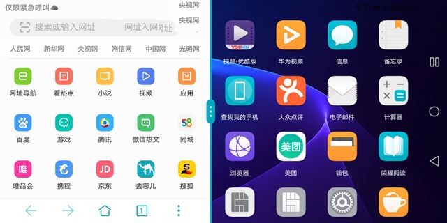 为了提升屏幕的利用效率,这个版本系统还支持屏幕分屏功能,至于如何使用,方法很简单。只需长按虚拟菜单键即可调用,全面屏即可一分为二,两个不同的区域拥有不同的操作画面。而且EMUI8.0系统还支持横竖屏状态下均支持分屏。