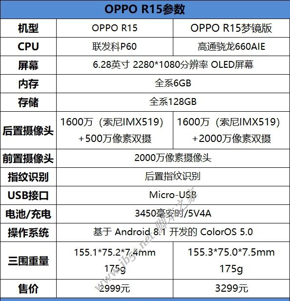 摄像头是OPPO R15梦镜版与OPPO R15的另一个区别,OPPO R15梦镜版了1600万+2000万像素双摄,而OPPO R15只搭载了1600万+500万像素双摄。
