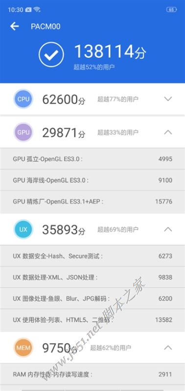 安兔兔的跑分会提供一个总成绩、多个子项成绩。