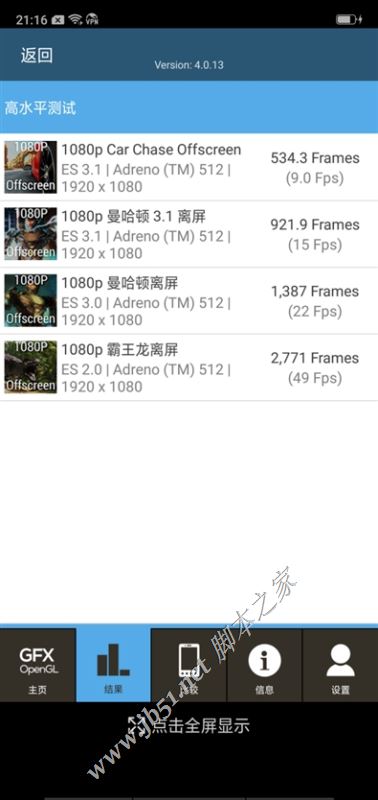 GFXBench提供了当屏(OnScreen)、离屏(OffScreen)两种测试对比方式。当屏即以设备屏幕原生分辨率运行测试,离屏即统一到1080p分辨率,便于跨设备对比。