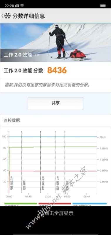 在PCMark测试环节,骁龙660AIE突然崛起,一举跑出了8436的超高分数,夺得了PCMark排行榜榜首的位置。