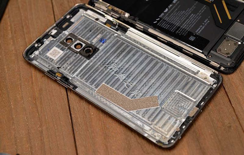拆除主板后就可以看到手机的中框,中框采用铝合金材质,一方面重量较轻,另外一方面可以吸收手机主板的热量,帮助手机散热