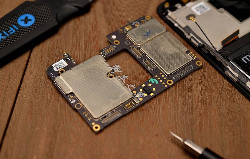 魅族15 Plus的主板上都覆盖有屏蔽罩,整个版型都是相当紧凑。
