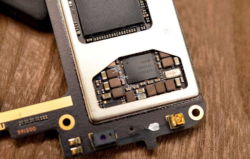 这颗S555M是手机的电源管理芯片,负责手机的CPU供电管理。