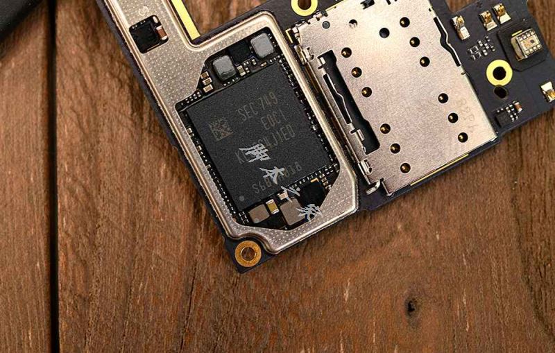 主板正面是手机的射频芯片和wifi、蓝牙、GPS等等的芯片,同时也是手机卡槽的位置。