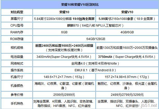 以上就是小编为大家带来的华为荣耀10与V10全面对比评测,希望能对您有所帮助,小伙伴们有空可以来脚本之家网站,我们的网站上还有许多其它的资料等着小伙伴来挖掘哦!