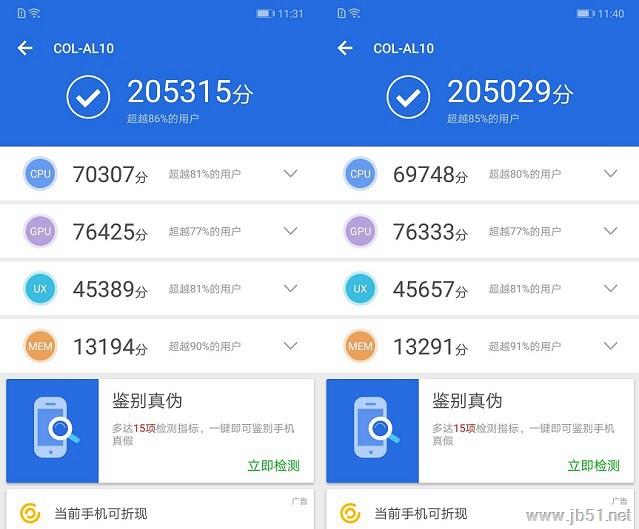 性能方面,荣耀10和荣耀V10都是搭载华为去年发布的麒麟970八核处理器,并加入了AI人工智能支持,性能在如今依然属于高端。从安兔兔V7跑分测试来看,荣耀10和V10安兔兔跑分都可以达到20万分左右。