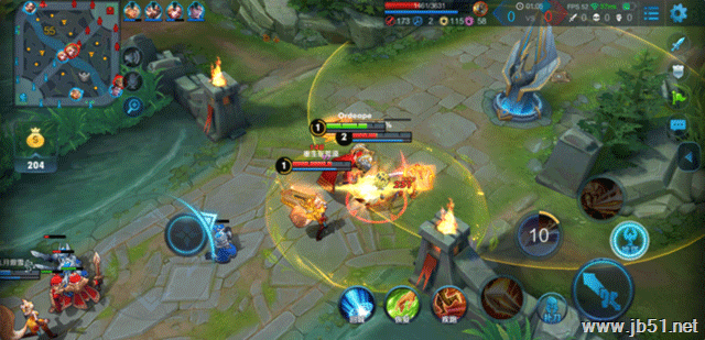 以上两张截图分别是两种团战情景下看到的帧数,一个是51帧,另外一个是52帧,基本上感受不到帧率下降的现象。在花费20分钟王者荣耀测试下,我们发现坚果R1的帧数一直非常稳定,可见骁龙845强悍的性能完全保障了游戏的流畅性和稳定性。