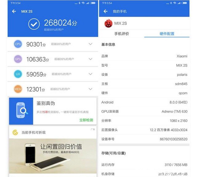 小米MIX2S安兔兔跑分