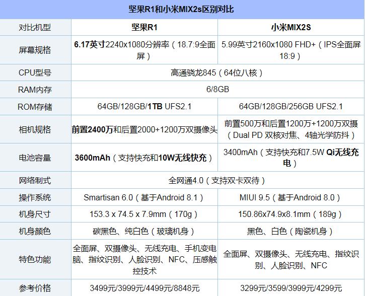 坚果R1对比小米MIX2S的区别
