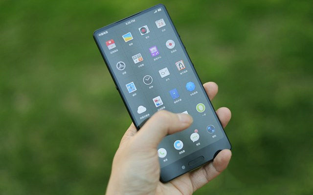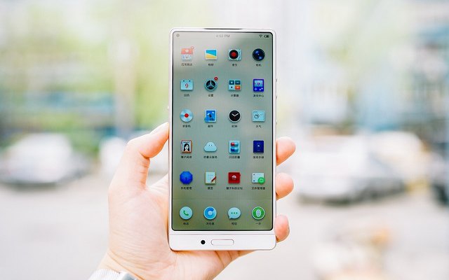 坚果3正面采用的异形全面屏设计,三窄边框+正面指纹Home键+倒置摄像头设计,与小米MIX2设计风格相似,只不过多加入了前置指纹设计,下巴显得有些偏长。