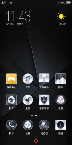 努比亚Z18mini运行基于Android8.1深度定制的nubia UI 5.1(努比亚Z18mini定制)系统,这个系统引进了NeoSmart人工智能引擎技术,使得系统优化和省电更为出色。