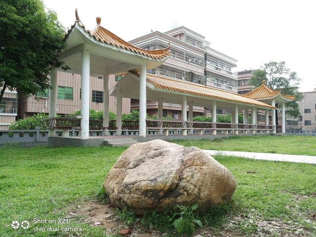 这张照片属于大环境逆光,但背光的岩石细节很丰富,纹理和质感得到很好的保留,AI逆光拍照再次发挥出令人惊喜的效果。小草青葱,亭子走廊的砖瓦也没有过曝,片片清晰。