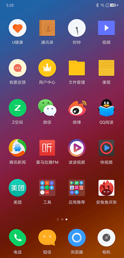 系统方面,联想Z5运行的是基于最新的Android 8.1深度定制的ZUI3.9系统,ZUI3.9在设计上更加简约,没有原生安卓的二层桌面设计,所用应用平铺于一张桌面,图标以最基础的圆形和方形作为基础,更加简洁。