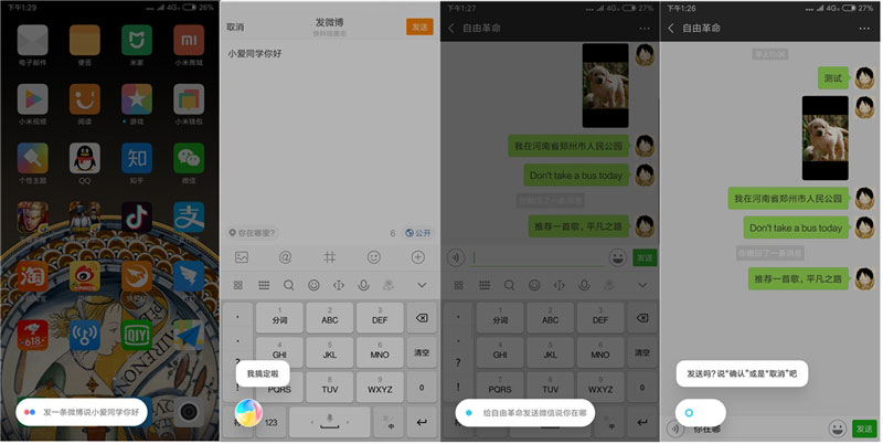耳语输入就是对着手机轻声细语的说话,小爱同学依然能听懂,AI训练计划则是通过“小爱录屏教学”来让小爱学会新技能。原理是让小爱记录录屏下的操作,从而重复这一操作。而一句话搞定则是非常方便的技能,即对小爱同学说“打开微博发一条XXX”、“打开京东领取京豆”,此时手机就会自动进行操作。