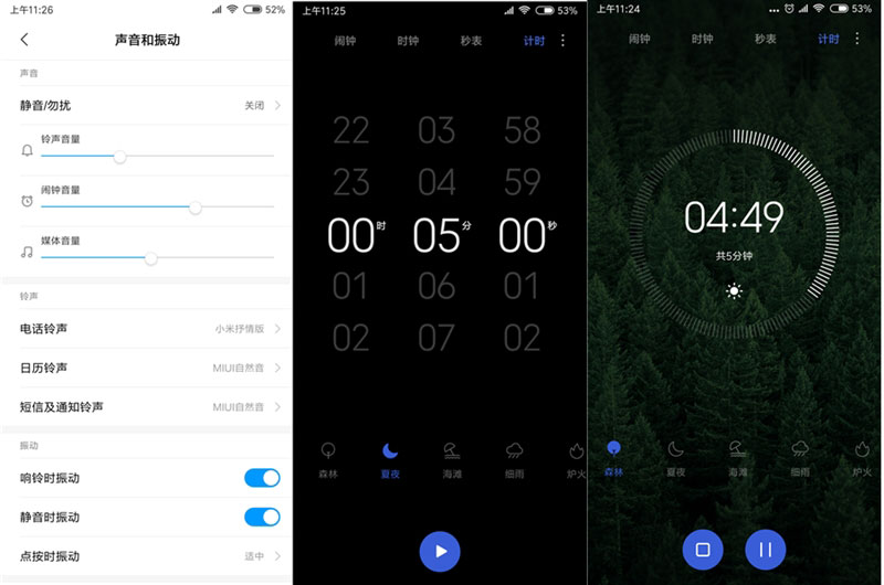 最后,MIUI 10对铃声也进行了优化,短信以及通知铃声为MIUI自然音,同时闹钟中也有着各种白噪音支持。