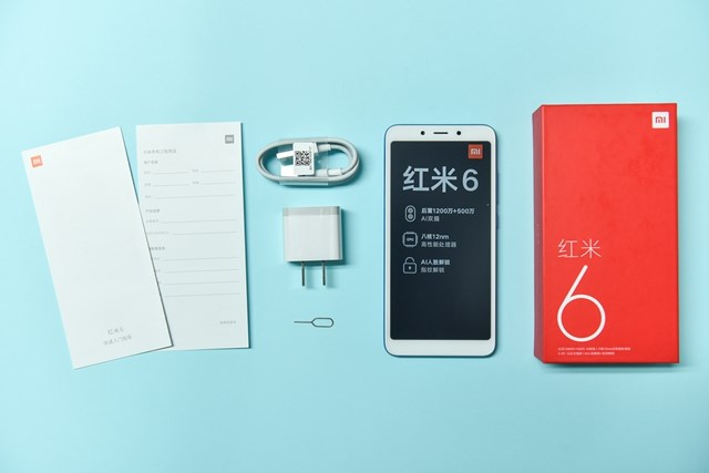 红米6的包装盒十分小巧简约,尺寸刚好能装下手机。红米6的包装盒内有:使用说明书、保修凭证、Micro数据线、电源插头、卡针及一台主机。红米6这样的价位,没有额外的配件或彩蛋也是理所应当。