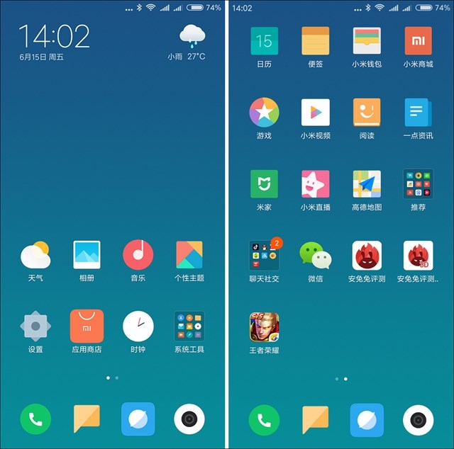 在系统主界面体验上,考虑到用户的过渡性是使用性,MIUI9相比MIUI8没有做出很大改变,仅仅是诸多细节方面的优化和完善。其默认主题《无界》算得一款视觉观感都不错的社交,图标线条简洁、色块对比明显,应用图标也针对第三方应用进行了重新绘制,这样看起来更为统一。