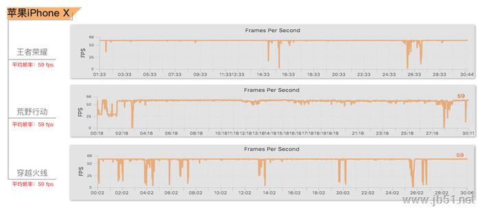《穿越火线》覆盖的玩家年龄段较多,对游戏体验也很有参考意义。iPhone X实际游戏平均帧数59帧,帧数有明显抖动现象,并且贯穿整个游戏过程。