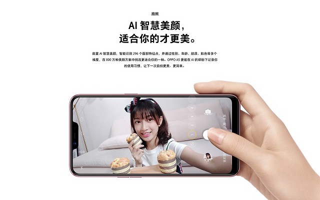 相机方面,OPPO A5提供前置800和后置1300万+200万像素双摄像头组合,相机规格一般。不过在美颜优化等方面还不错,可以满足入门用户,日常美颜拍摄需求。