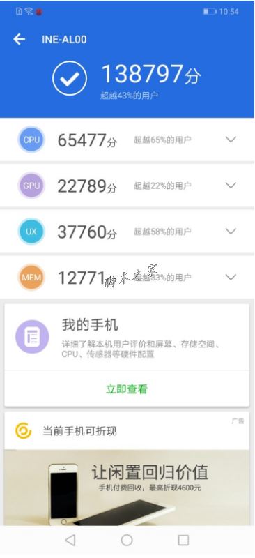 下面我们再来看看华为nova3i安兔兔跑分实测,通过跑分可以更为直观的了解这款手机性能如何。