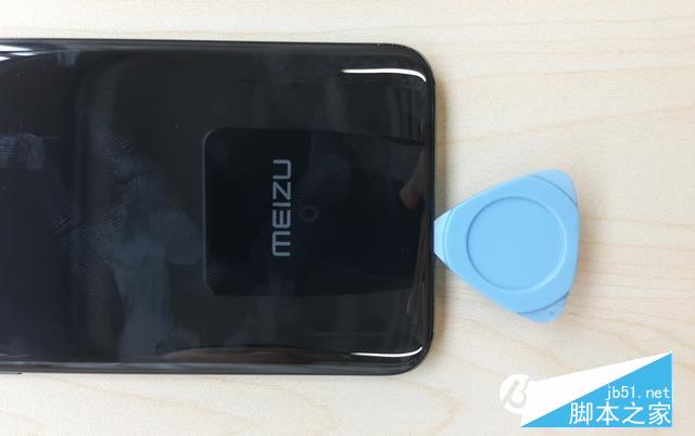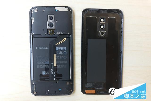由于魅族16采用屏下指纹设计,玻璃后盖上并没有指纹传感器,因此后壳可以比较轻松的分离出来,如下图所示。