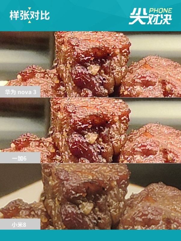 从样张对比上看,一加6的颜色表现更加鲜艳,色彩饱和度高,人物美颜模式偏向真实;华为nova 3的画面细节丰富,高楼阴影部分仍能看到楼层间隔区分,它的色彩表现同样不俗,食物在灯光环境下色泽饱满,细节清晰,能令人食欲大增。小米8的人像模式表现不错,光泽亮丽,皮肤细腻,但是在某些方面的表现仍是有所欠缺,优化上还有提升空间。
