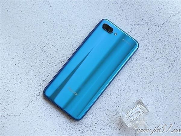 荣耀10采用了5.84英寸2280×1080刘海屏,屏幕纵横比为19:9,配备前置指纹,背部为玻璃材质,而且是渐变设计,双摄像头位居左侧,整机颜值很高,提供海鸥灰、幻夜黑、幻影蓝、幻影紫四款配色。