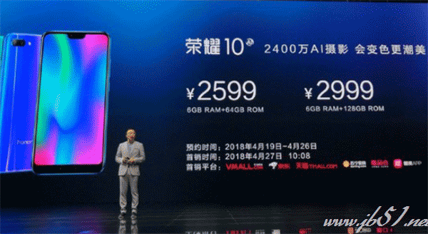 荣耀10有两个版本可选,分别是6+64GB版、6+128GB版,售价分别是2599元和2999元。