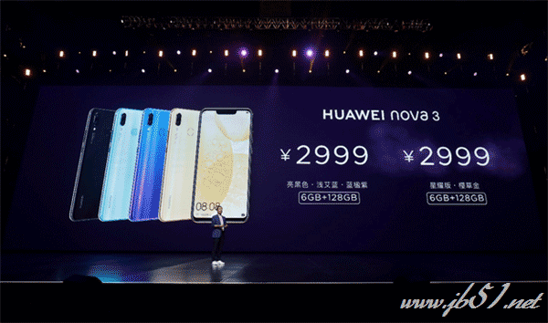 华为nova3只有6GB+128GB版本,售价2999元。