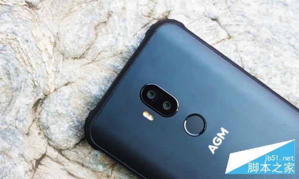 而背部的设计也和时下主流的手机风格趋近,上方正中是竖排排列的双摄,下方紧跟着是指纹识别模块,中间是“AGM”的logo,下方则是AGM标志性的山形图标,底部还有两块左右对称的扬声器模块。