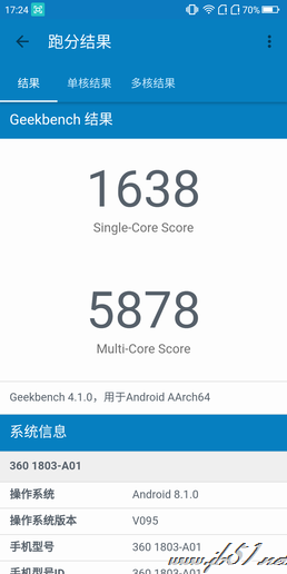 360手机N7 Lite Geekbench跑分