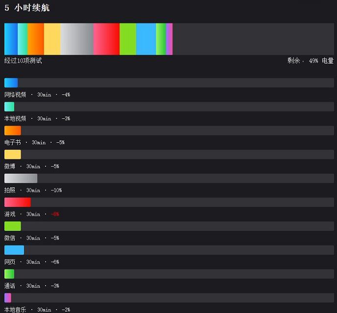 续航方面,vivo X23内置3400mAh容量电池,支持快充。对于一款6.41英寸大屏手机而言,内置3400mAh容量电池并不算大,不过系统相对精简简约,对续航优化较好,从5小时重度使用来看,电量从100%,降至49%,耗电51%。