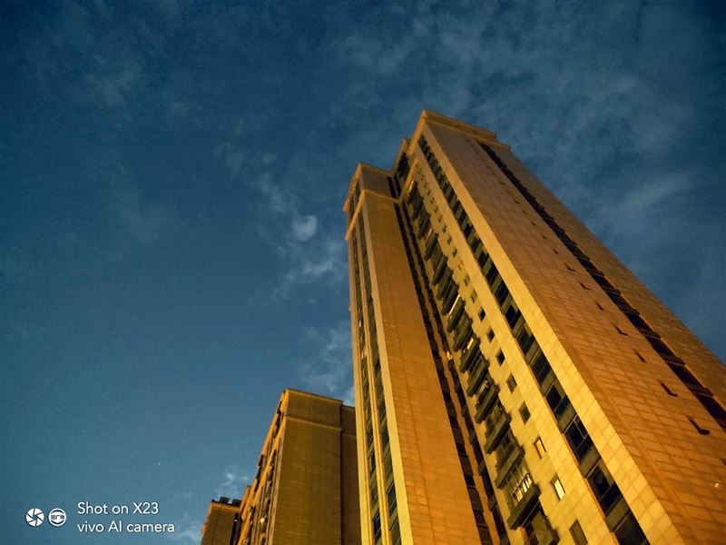 夜幕刚刚落下,自带“夜视仪”的vivo X23将昏黄灯光笼罩的楼体以及天空细节还原得十分到位,且噪点也得到了有效抑制。