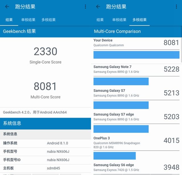 为了满足跑分党的好奇心,小编还是利用常规的跑分软件对努比亚Z18进行跑分性能测试,结果如下。
