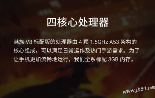 标配版魅族v8所搭载的4核A53处理器,内置3200mAh容量电池,也能满足日常使用需求。