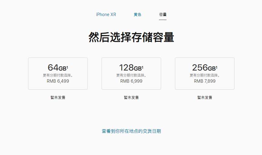 iPhone XR属于最便宜的一个版本,提供三个版本可选,国行版具体售价如下: