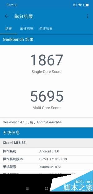 荣耀8X对比小米8 SEGeekbench跑分对比