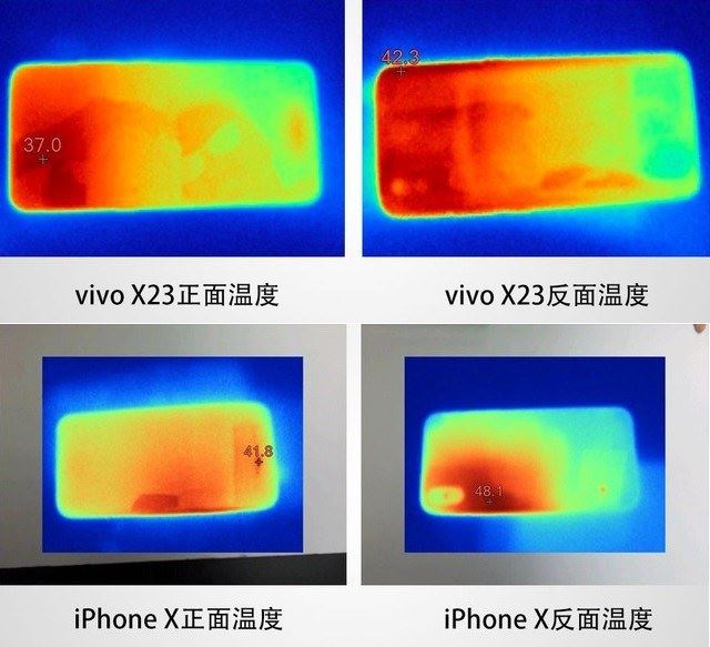 总的来说,iPhone X相比vivo X23有明显的性能优势,只不过散热方面,苹果X并不算出色,玩一段时间后,vivo X23机身的手感为温热,而iPhone X背面摄像头区域会感觉到有点发烫。