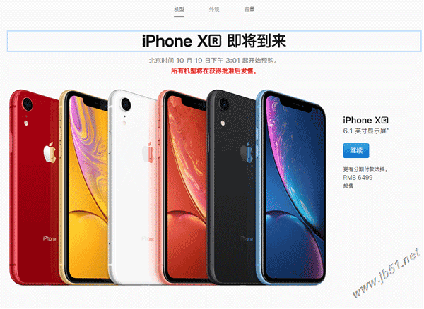 根据官网售价显示,iphonexr有64GB、128GB、256GB三个内存版本,6499人民币起售。
