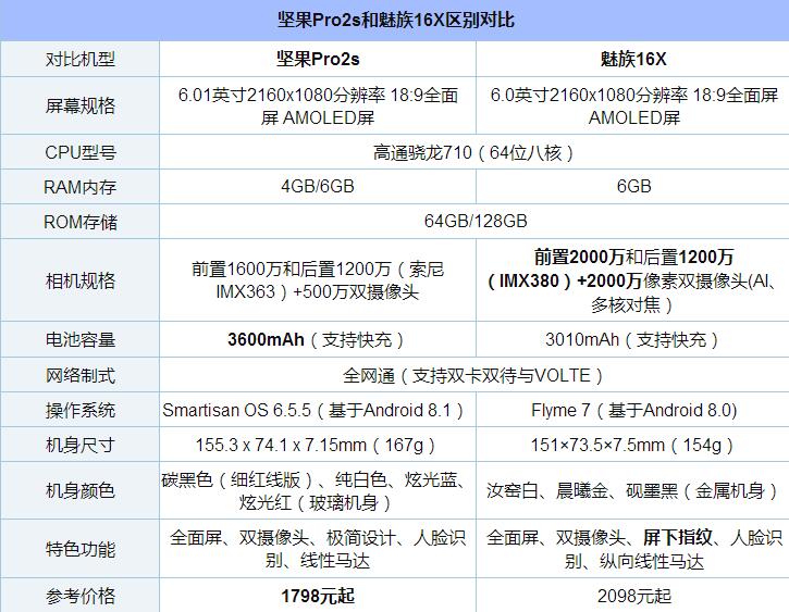 作为2款价格相近的经典的骁龙710手机,购机容易纠结也不难理解,不过我们只要了解这两款手机的区别,并结合自己的需求,就可以比较轻松的做出选择了。下面首先来看看坚果Pro2s对比魅族16X参数部分。