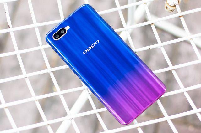 外观方面,OPPO K1提供梵星蓝、摩卡红两种颜色可选,均采用了渐变色3D后壳设计,而正面采用OPPO R17一样的水滴全面屏,同样采用了COF屏幕封装工艺,下巴很窄,屏占比高达91%。