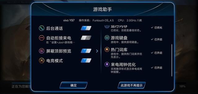 vivo Y97搭载了最新的游戏助手4.0,其全新的电竞模式能够更好的调节应用资源分配。结合处理芯片带来的CorePilot 4.0智能核心调度和NeuroPilot深度学习技术,实现更好的CPU、GPU和APU之间智能协调运作,带来更加畅快的使用体验, 从实际游戏体验来看,这款手机打王者荣耀帧率可以稳定在50FPS左右,而中大型的《绝地求生 刺激战场》也能在30FPS以上较为流畅运行。
