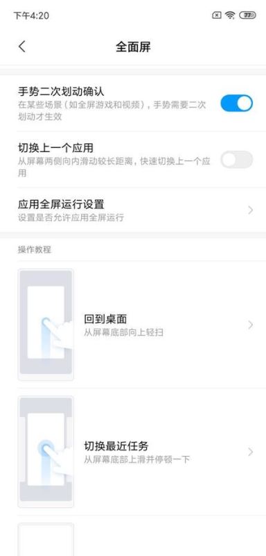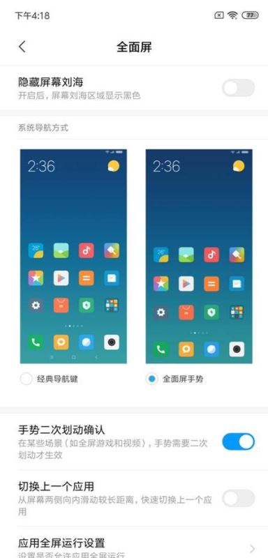 另外在全面屏的设置中,还可以开启手势操作,隐藏底部返回键等设置。