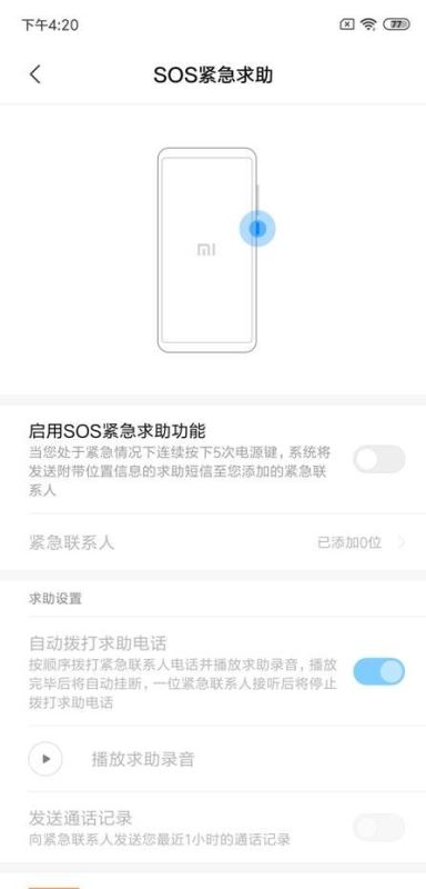 在设置中,还有SOS紧急求助功能,这一功能对于女性朋友来说很实用了。