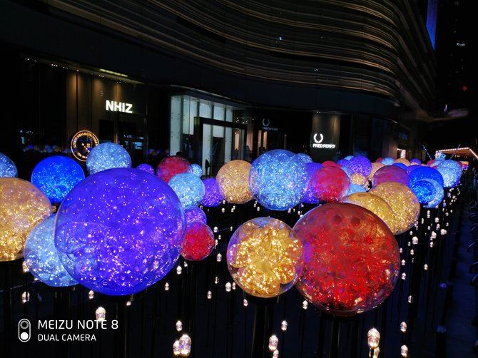 魅族Note8的夜景表现依然是非常出色,虹软算法加上高通的ISP让画面的噪点大大降低,画面更为纯净。f1.9的大光圈和1.4um的打算像素组合,让魅族Note8夜景拍摄得到进一步提升,在光线复杂的场景下依然能有出色的表现。