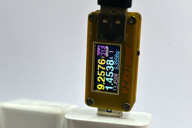 魅族Note8支持18w的mCharge快充,提供一个9V2A的充电头,实际测试中可以看到,魅族Note8充电电压能达到9.2V,实际的充电功率达到13-14W之间。